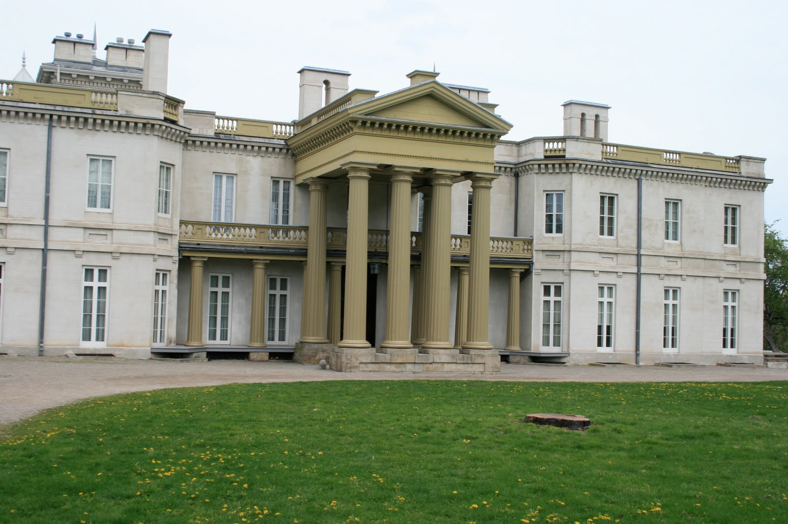 So, this weekend, the neighbouring city of Hamilton in Ontario, Canada, is having this "Doors Open" event, which means that access to all historical buildings and monuments is FREE until tomorrow. Needless to say, I've been trying to take full advantage by carting the mister around to as many places as possible. Yesterday, we hit up two locations. The first is Dundurn Castle...or at least the outside of it. We didn't get inside due to huge line-ups, but I DEFINITELY plan to go back. This location evoked every Jane Austen novel and movie, combined with all English manor house films, from Gosford Park to Atonement. WHY didn't I bring a car full of gowns? ;) Seriously, though, the place was packed with weddings and tourists, so we were just lucky we got some pictures that didn't have people other than myself in them. Side note: wow, people love to stare! I cannot believe that the world has come to a place where a woman in a hat is some sort of specimen to be gawked at! At any rate, without further ado, I give you Dundurn Castle. Fingers crossed I shall be heading out again shortly for Day Two of this historical building extravaganza!